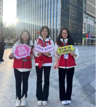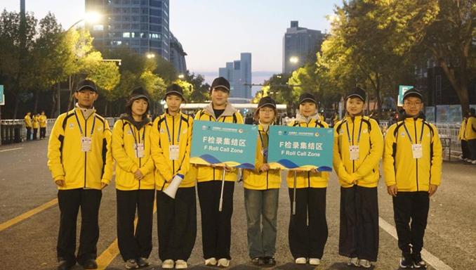 此外,学院青马逐梦志愿服务团队也参与卫津荣耀在南开区组织的马拉松赛事志愿服务工作中。团队成员们秉承“奉献、友爱、互助、进步”的志愿精神,在指定的服务点位,为选手们提供路线指引、物资补给、加油助威等贴心服务。